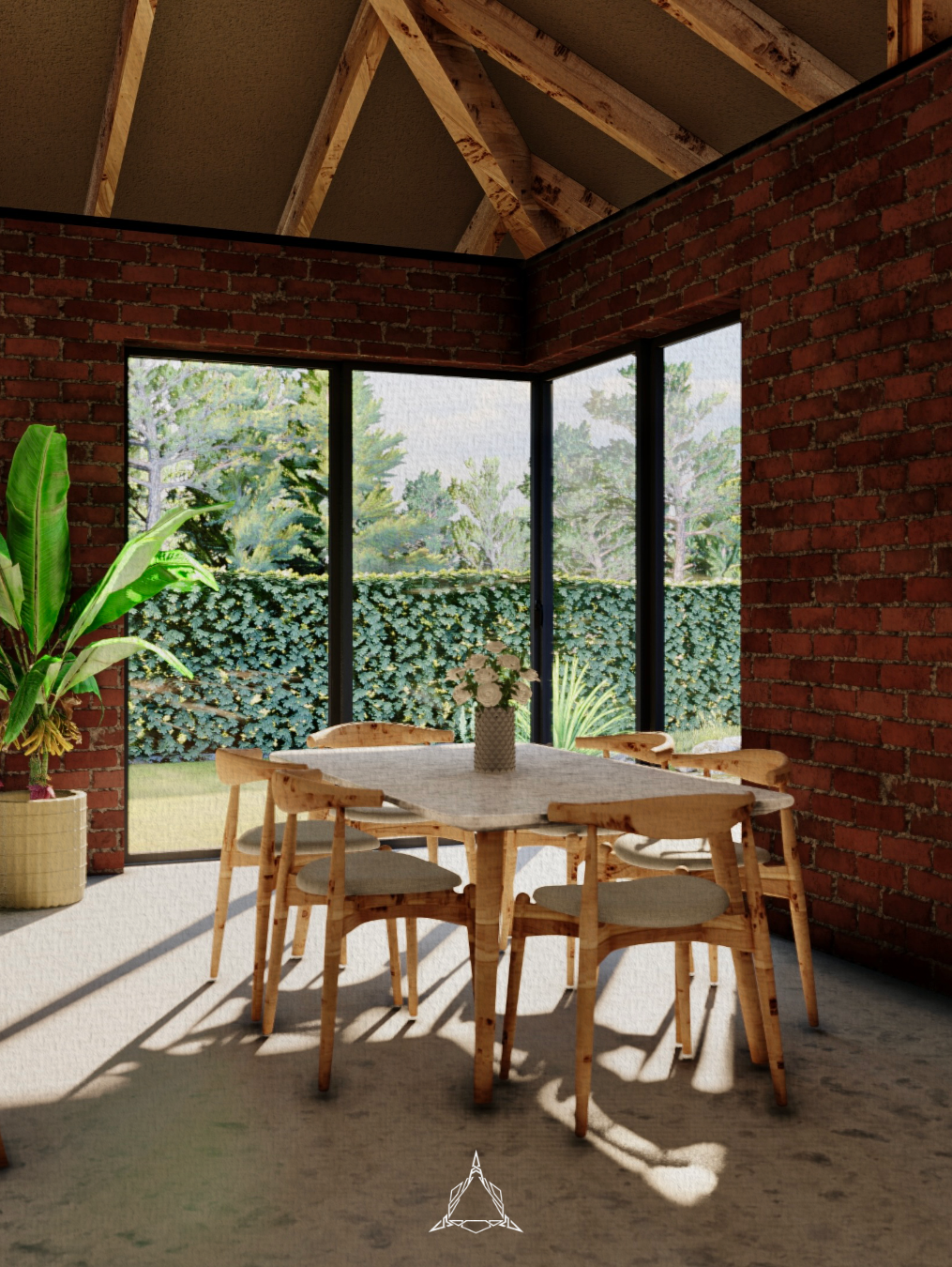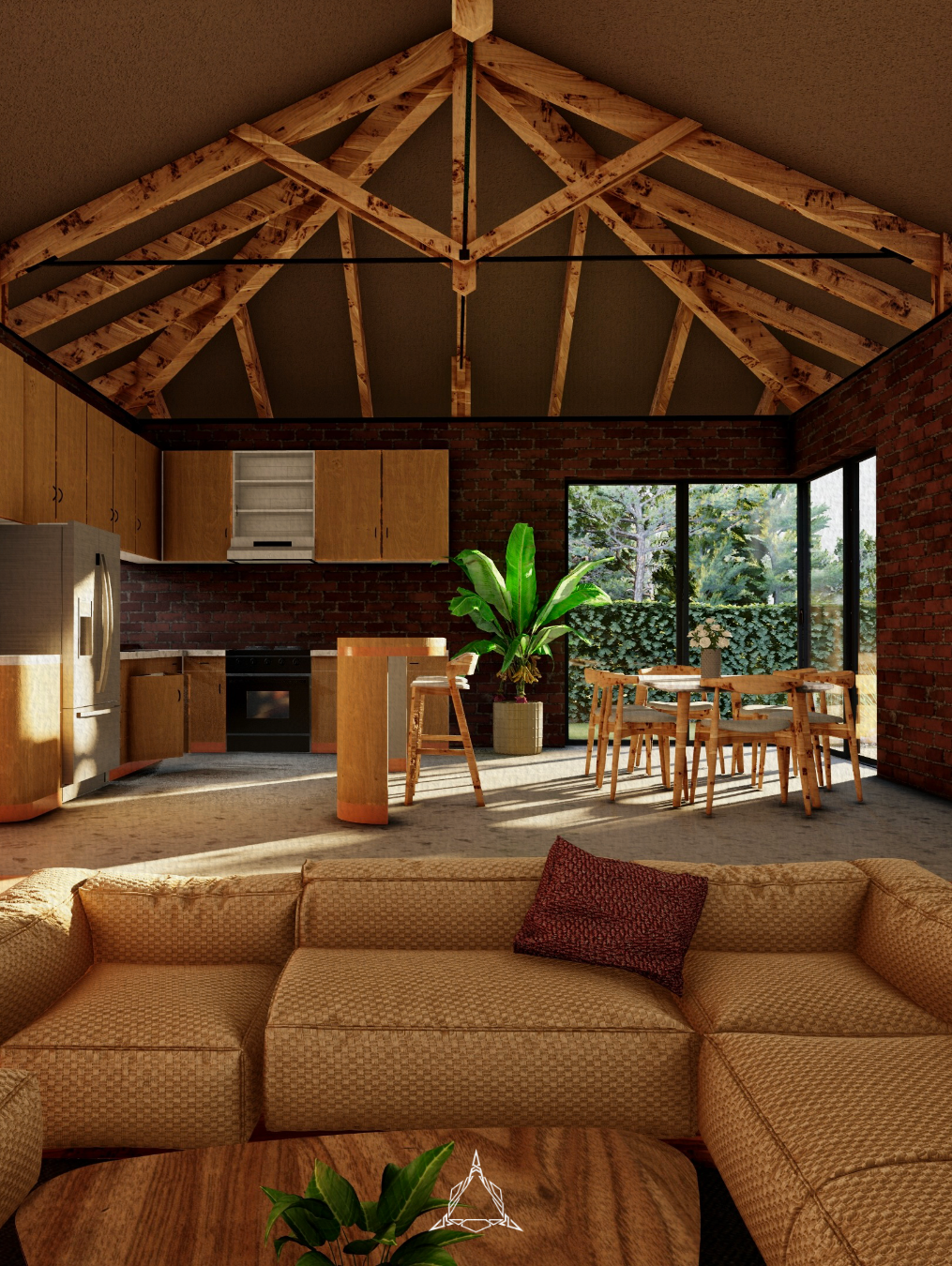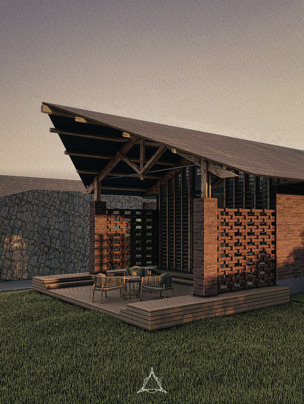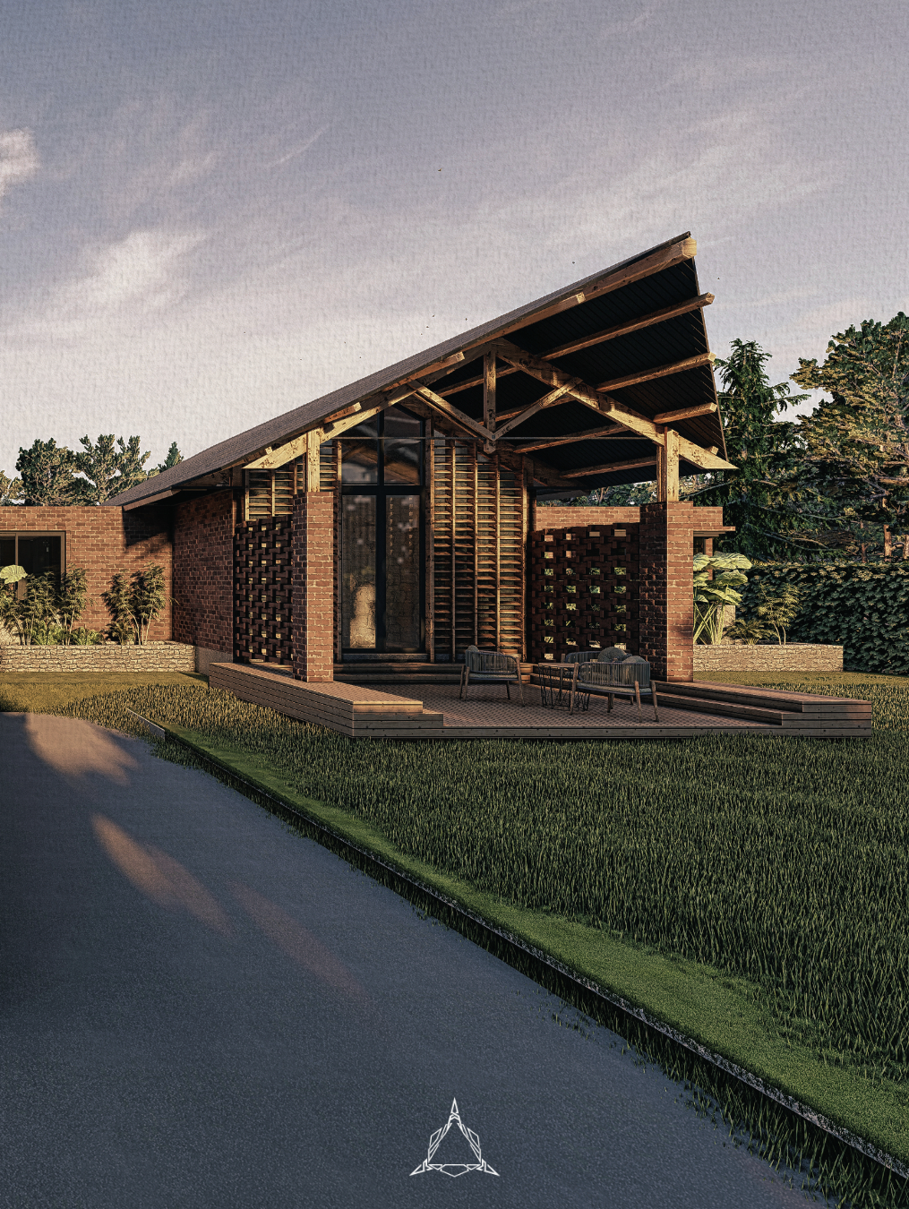 Burka B&B is a low-cost residential development in Arusha’s Burka area, consisting of two identical units on a single plot. Each unit features a central open-plan living, dining, and kitchen space, with three bedrooms branching off from this core, offering a flexible layout suitable for both short- and long-term rentals.The design highlights exposed red brick construction, a striking pitched roof with elegant timber detailing, and is complemented by lush, integrated landscaping.